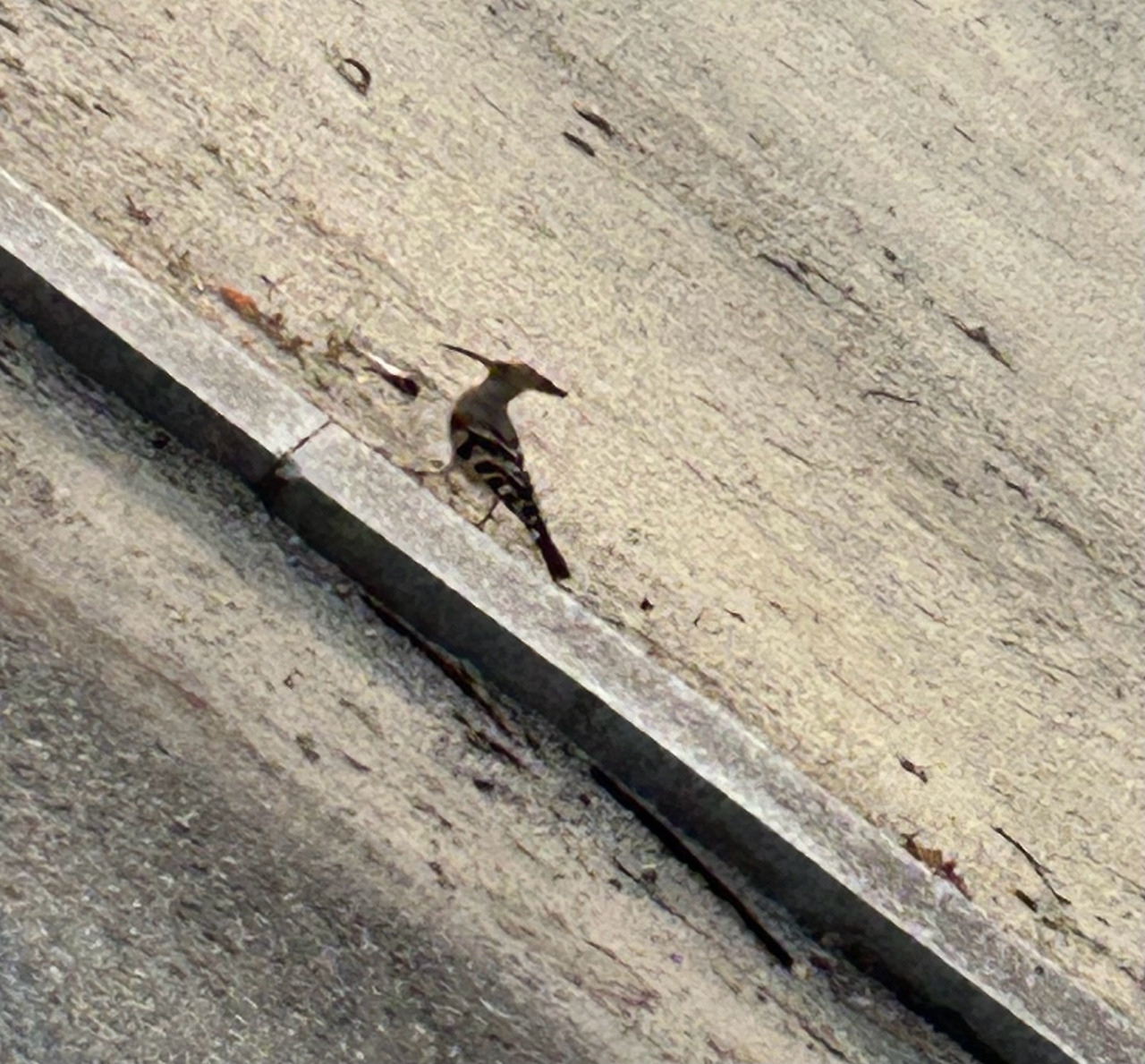 뒷 건물 마당에 앉아 있다 들켰다. 녀석도 놀라고 나도 놀랐다. 이번엔 스마트폰으로 찍을 새도 없이 도망갔다. 다시 카메라를 들었다. 그러기를 며칠, 역시나 꽁지 털도 안보인다. 이번엔 정말 이사를 갔나 보다. 저 소음 속에 살 수 없을 거다.