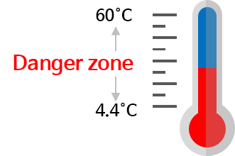그러므로 가열 처리한 식품 즉, 뜨거운 식품을 냉장보관할 때는 얼마나 빨리 차갑게 냉각시키느냐가 식품안전의 관건이 된다. 즉, 식중독 예방에 있어 열처리 못지않게 중요한 공정은 냉각 공정이다. 따라서 뜨거운 식품을 단시간에 냉각 목표 온도인 4℃까지 낮추는 방법을 찾는 것이 중요하다. 뜨거운 식품을 차갑게 만드는 좋은 방법은 식중독균이 증식하기 좋은 온도 범위인 Danger Zone(위험온도 범위)에 머무르는 시간을 최대한 줄이는 것이다. 쉽게 말해서 가능한 한 빨리 Danger Zone을 벗어나게 하는 방법이 좋은 것이다.