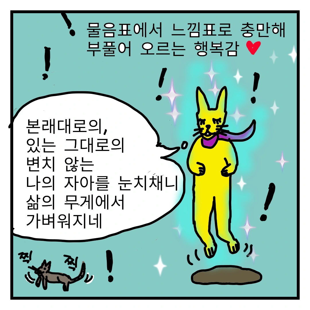 물음표에 정직하다 보면 내면에서 충만한 느낌표가 음표로 떠오른다.