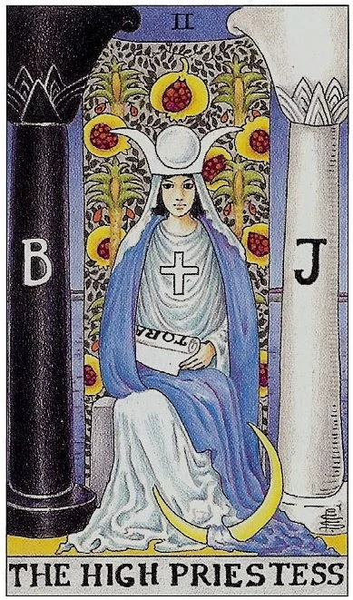 마법사가 하늘의 뜻을 현실에 창조하는 물질적 지식을 주는 태양의 남자라면 여사제는 정신적인 가르침을 주는 달의 여자입니다.
