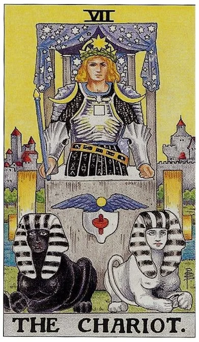 전차 카드의 대표 키워드는 '승리'임에도 곳곳에 볕이 있으면 그늘이 있듯 이중성의 상징이 있습니다.