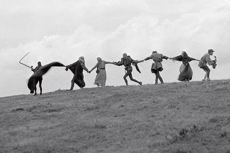 안토니우스와 여행을 떠난 마을의 평범한 시민, 주인을 섬기는 기사까지 다양한 개인들이지만 이들 앞에 등장한 죽음은 모두의 손을 잡고 하나의 대열을 이루게 합니다.