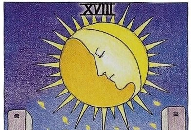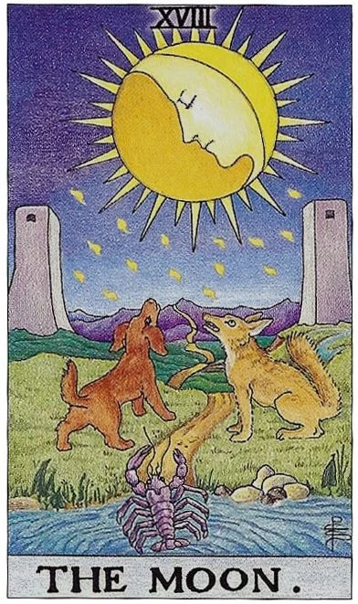 은둔자는 모두를 위해 고뇌로써 홀로 의식의 표면으로 지혜를 이끌어냈다면 달 카드는 의식하지 못한 무의식의 밑바닥을 발굴해 내지요.