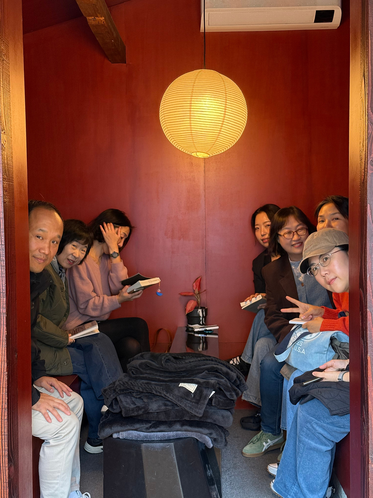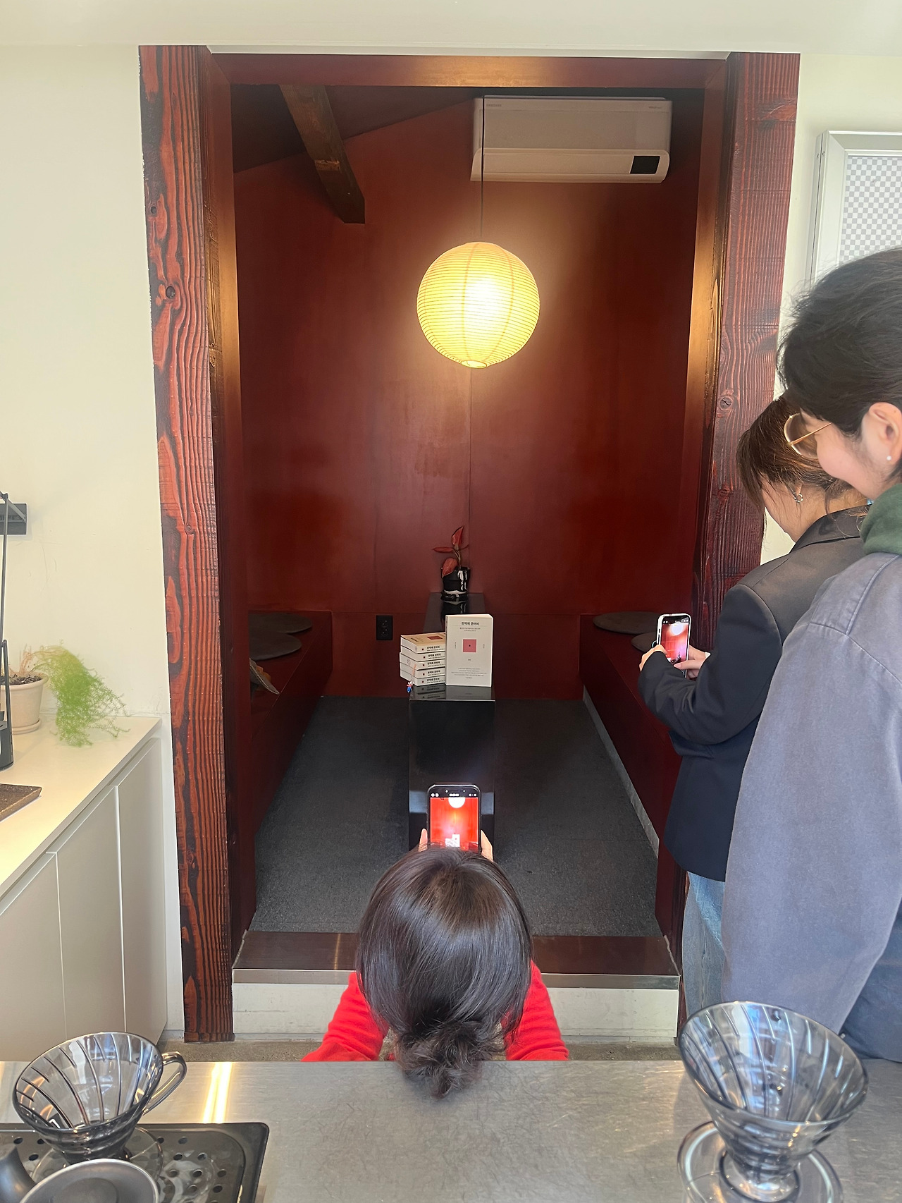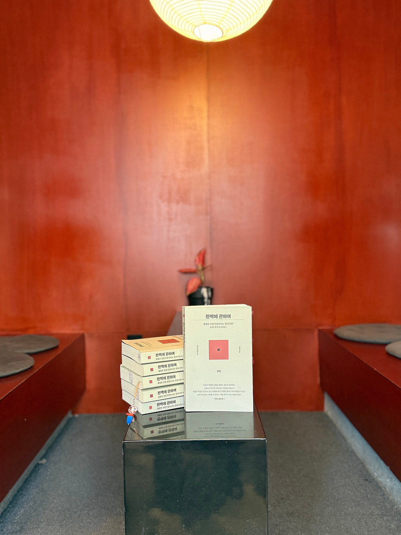 아니 아뿔싸! 벤치가 나란히 놓인 골방 프라이빗룸이라니... 폐소공포증이 있는 해리언니는 끝내 들어가지 않으려 했던 좁디좁은 공간에 옹기종기 모여 앉아 뉴욕의 목수 마크 엘리슨이 쓴 <완벽에 관하여>를 읽고 각자의 일에 대한 경험과 생각을 나눠 봤다.