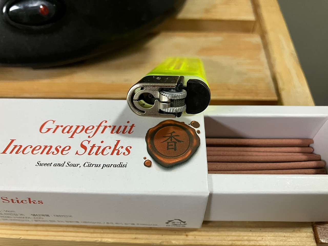 얼마 전에는 곧 있을 이사를 준비하면서 스틱형 인센스도 하나 구입해 봤다. 후각이 둔한 내 코에도 향 냄새가 너무 강해서 손이 안 가던 인도 출신 인센스 틈에 조용히 자리잡고 있던 국산 자몽향 인센스. 이렇게 나의 아침은 인센스에 불을 붙이는 걸로 시작한다. 거실 겸 방 겸 주방(흑흑, 원룸인이여ㅠ)의 커피메이커 옆에 하나, 화장실에 하나. 홀더는 따로 사지 않고 집에 있는 접시를 받쳐서 쓰고 있다.