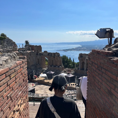 기차역에는 짐 보관소가 없어 역 근처에 있는 여행사에 가방을 맡기고 타오르미나로 향했다. 타오르미나는 바다 옆에 있는 절벽 위에 세워진 도시인데, 옆에 바다를 두고 올라가는 그 길부터 버스를 타고 가면서 봐도 참 멋졌다.