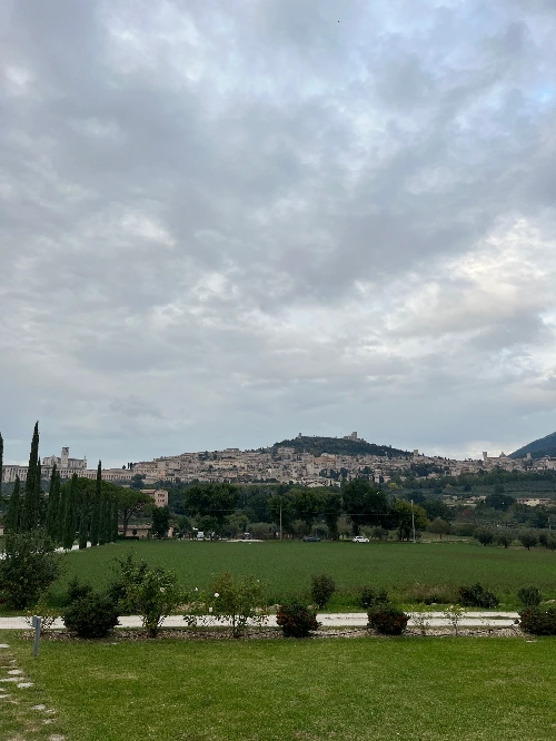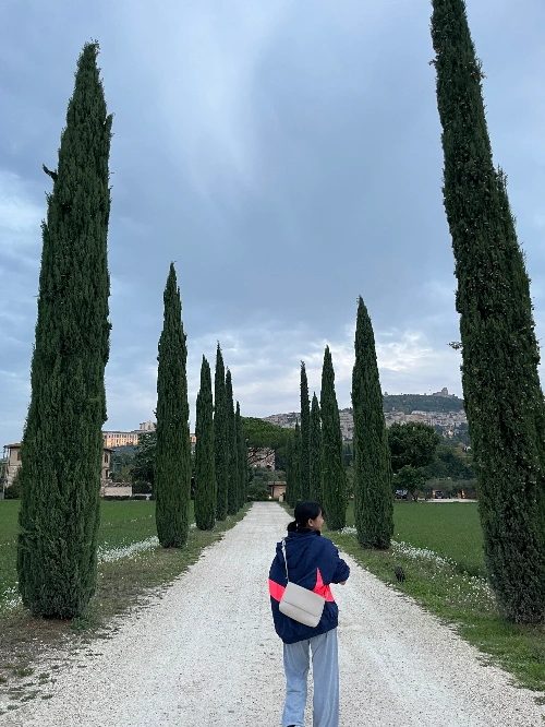 숙소는 아시시를 마주 보는 평지에 있어 도시를 한눈에 볼 수 있었다. 거기다 숙소에 들어오는 길 양옆으로 사이프러스 나무들이 있었는데, 토스카나에서 사이프러스 나무 길을 보기 위해 고생한 게 생각나 조금 억울했다.