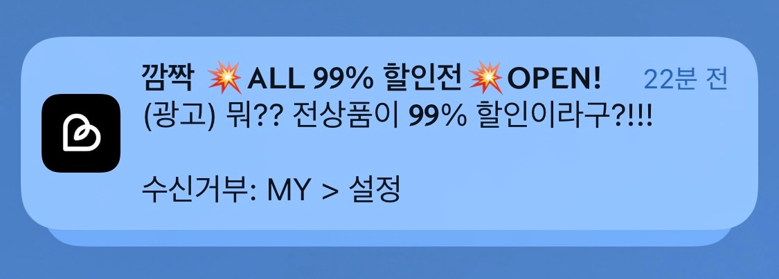<최대> 말고 <전상품> 99퍼 할인이라는데