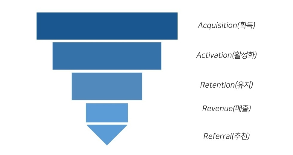 Acquisition(획득) / Activation(활성화) / Retention(유지) / Revenue(매출) / Referral(추천)