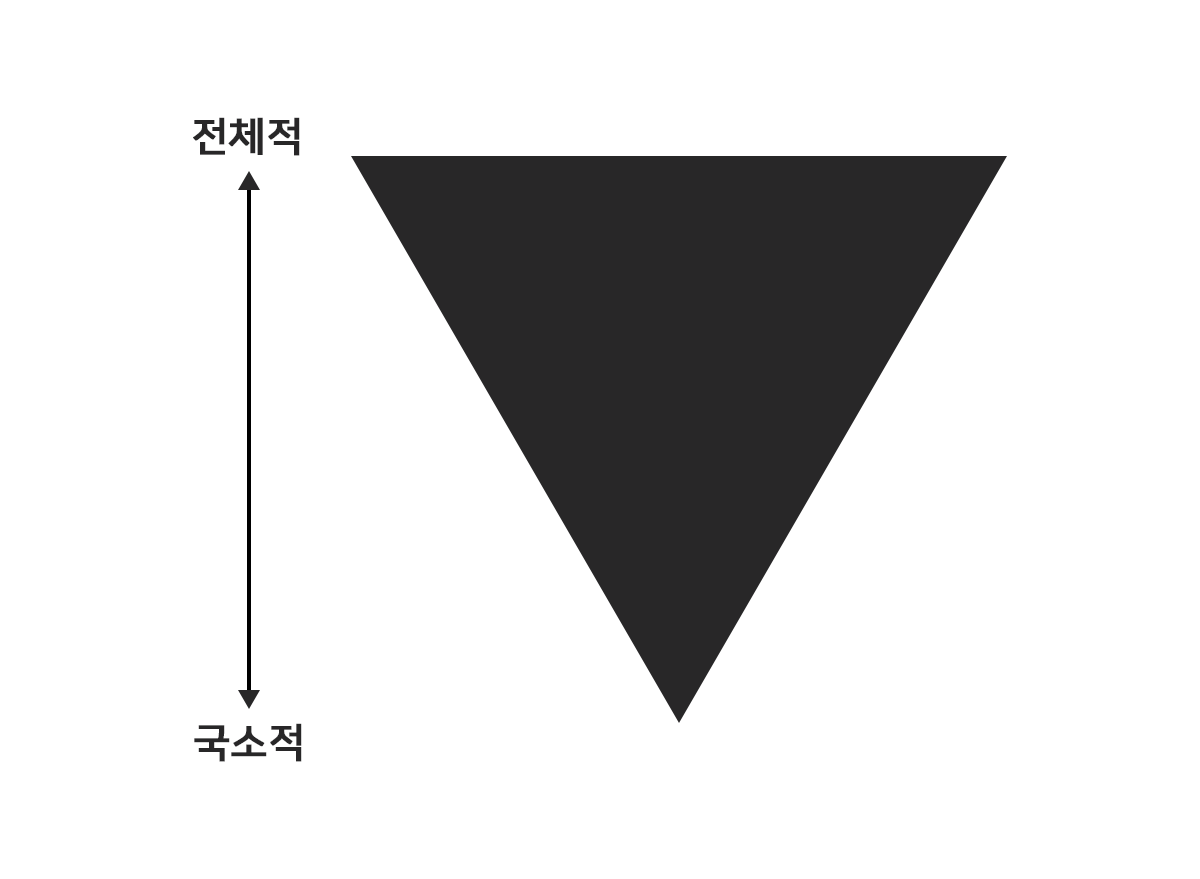데이터 분석 수행 단계에서는 아래 이미지와 같이 전체적인 것에서부터 국소적인 것으로 데이터를 분석하는 것이 효율적입니다.