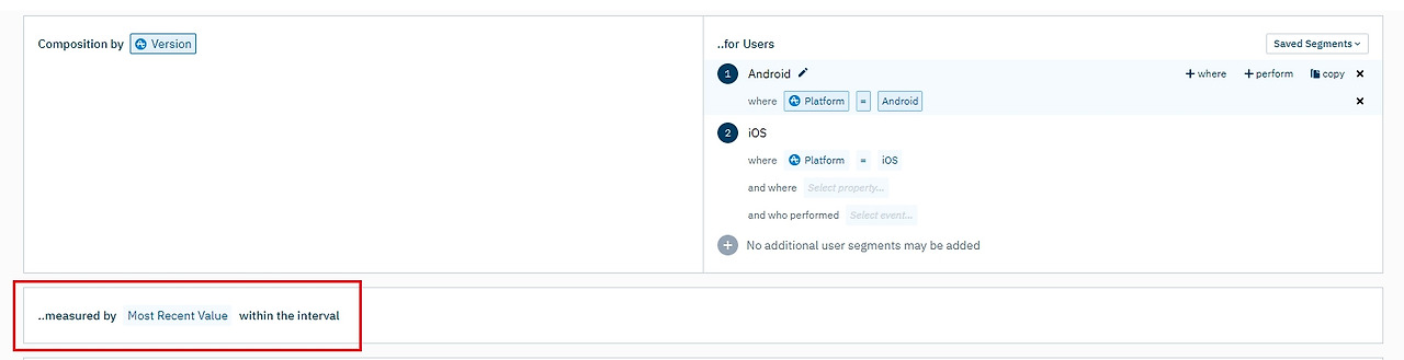 예를 들어 Android와 iOS 모두 Revenue >= 3times 이상인 segment끼리 비교하고자 한다면 Android 세그먼트를 먼저 만들고 copy 한 뒤 where의 platform을 iOS로 변경하면 됩니다.