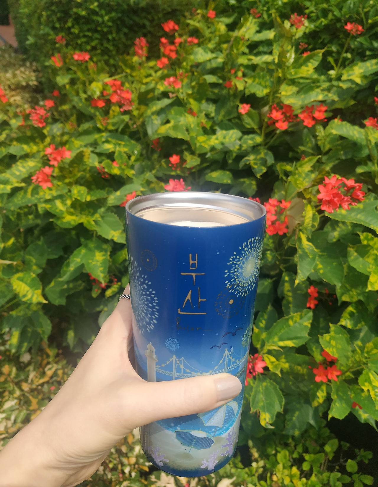 시원한 음료 한 잔 사면, 일회용컵에 빨대, 거기다가 손에 들기 쉽게 비닐 손잡이를 씌워 준다. 시원한 음료 한 잔 들면 손이 가득 차 다른 것을 들고 가기 불편한데 이렇게 비닐 손잡이가 있으면 손이 자유롭다. 날이 워낙 덥기에 얼음이 가득 담긴 페트를 들고 있으면 얼음이 금방 녹는데, 비닐 손잡이에 음료를 걸어 다니면 얼음이 그나마 덜 빨리 녹아 음료의 시원함이 오래간다. 아이디어 상품임에 분명하다.