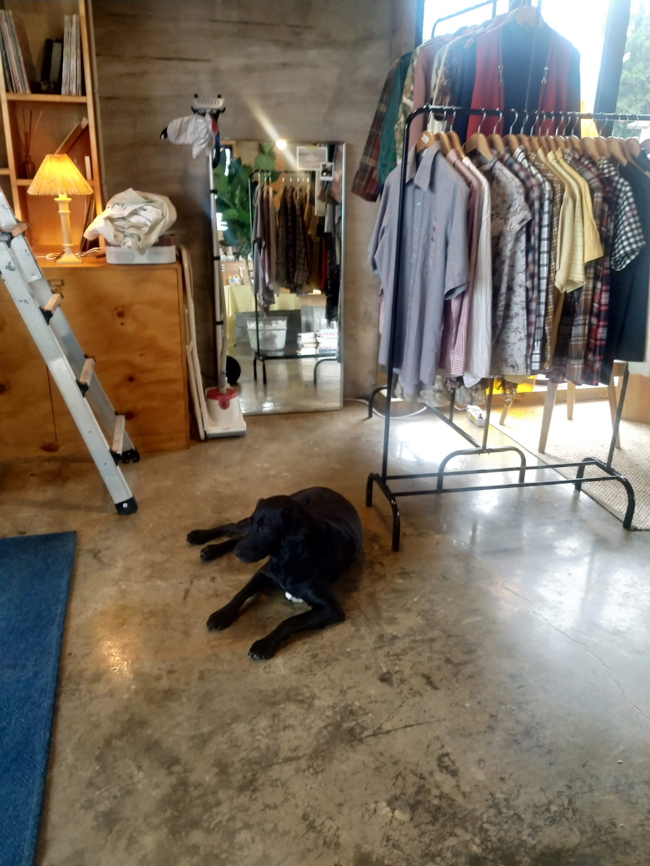 커피와 쿠키뿐만 아니라 빈티지 옷과 잡화를 파는 버터행성 706에는 대형견 '밤이'도 있다. @버터행성706