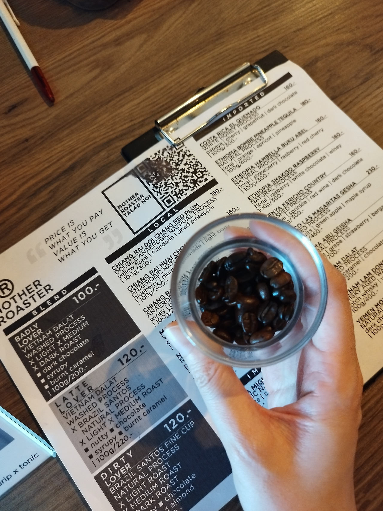 외국의 스페셜티 원두도 있지만 태국 로컬 원두도 있다. 태국 북부 치앙라이 산지에는 커피 농장들이 있는데, 직접 가지 않고서도 방콕에서 태국산 커피빈으로 드립커피나 에스프레소를 마실 수 있으니 당연히 나의 선택은 로컬 커피다!