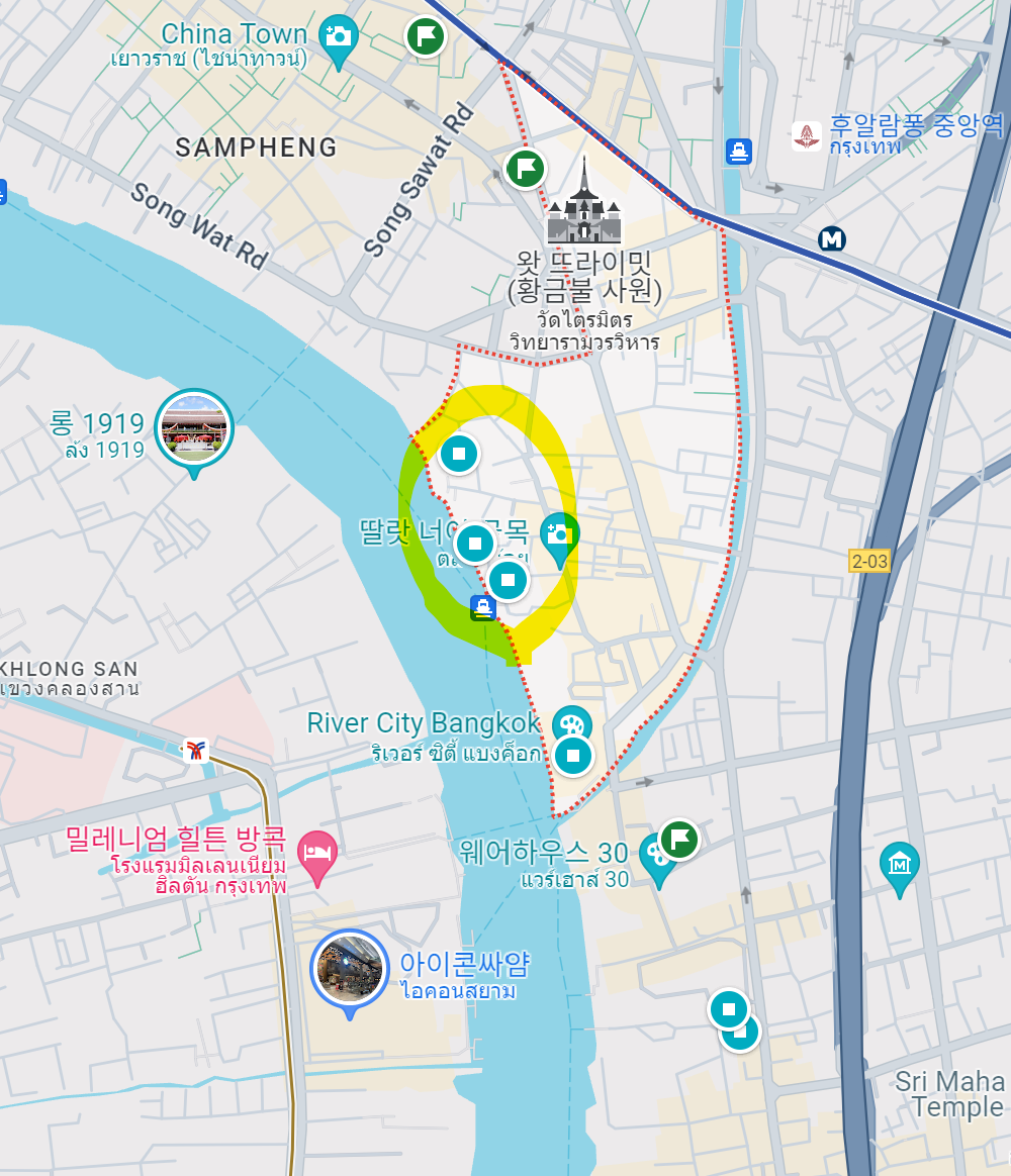 딸랏너이는 방콕의 차이나타운 아래, 아이콘 시암의 맞은편, 차오프라야 강변가에 위치해서 방콕 관광 시 들르기에 위치도 딱 좋다. 방콕의 최근 가장 힙한 곳 중의 하나가 어디냐고 묻는다면, 이곳을 꼽을 수 있다. 딸랏너이는 화교 공동체의 본거지였다고 하며, 중국인뿐 아니라 다양한 나라의 다양한 민족들이 살기 시작하면서 방콕 최초의 항구이자 이민자들이 상륙한 지역이었다고 한다.(출처: 위키피디아) 이런 내용을 모르고 방문하더라도 곳곳의 오래된 흔적들에서 충분히 짐작이 된다.