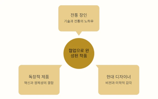 장인은 디자이너의 새로운 제안을 전통의 틀 안에서 구현할 방법을 고민하고,