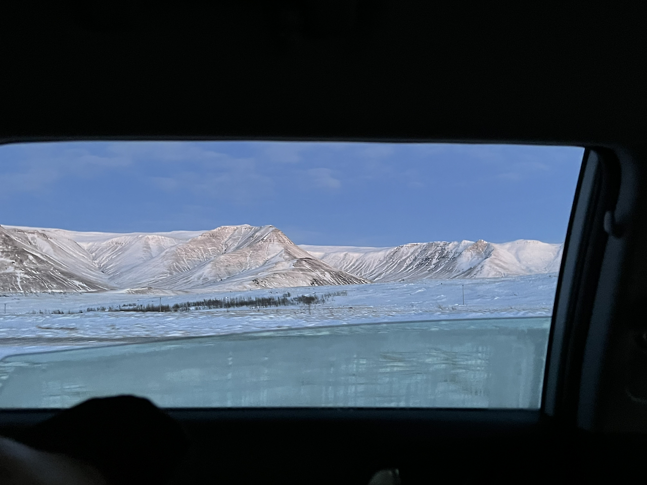 도시를 벗어나자 나타나는 쭉 뻗은 도로는 광활하다는 말이 잘 어울렸다. 여전히 동이 트지 않았지만 길 옆으로 버티고 선 설산들과 눈 덮인 평야가 빛을 반사해 환한 느낌이었다. 나무는 한그루도 없는지 매끈한 설산이 주는 위압감이 엄청났다. 달리다 보면 정말로 끝도 없이 넓은 스키장 한가운데 있는 것 같기도 하고, 얼마나 크고 얼마나 멀리 떨어져 있는지 원근감이 잘 느껴지지 않는 먼 산을 보며 가다가 중간중간 눈에 처박힌 차들을 가까이서 발견할 때마다 정신이 번쩍 났다. 차를 세워뒀다가 봉변을 당한 건지, 어쩌다 보니 도로 바깥으로 빠진 차를 다시 빼낼 수 없었던 건지 모르지만 주인 없이 버려진 차들을 볼 때마다 '방심하다간 이렇게 된다'는 긴장감이 엄습했다. 이럴 때 보면 이렇게 주의력 산만하게 세계를 누비는 내가 운전을 못하는 게 범 지구적 안전을 지키는 일이라는 생각이 든다.