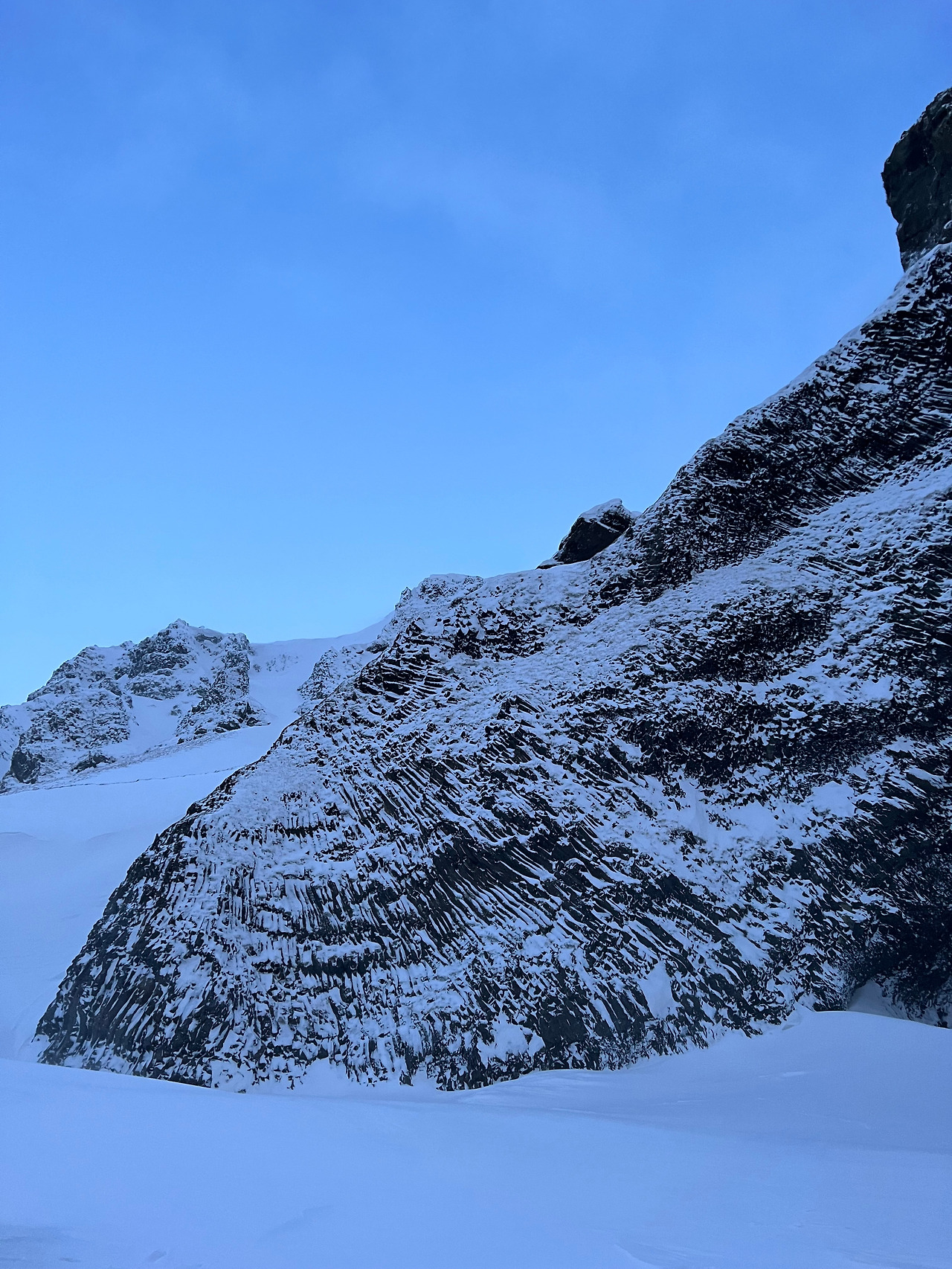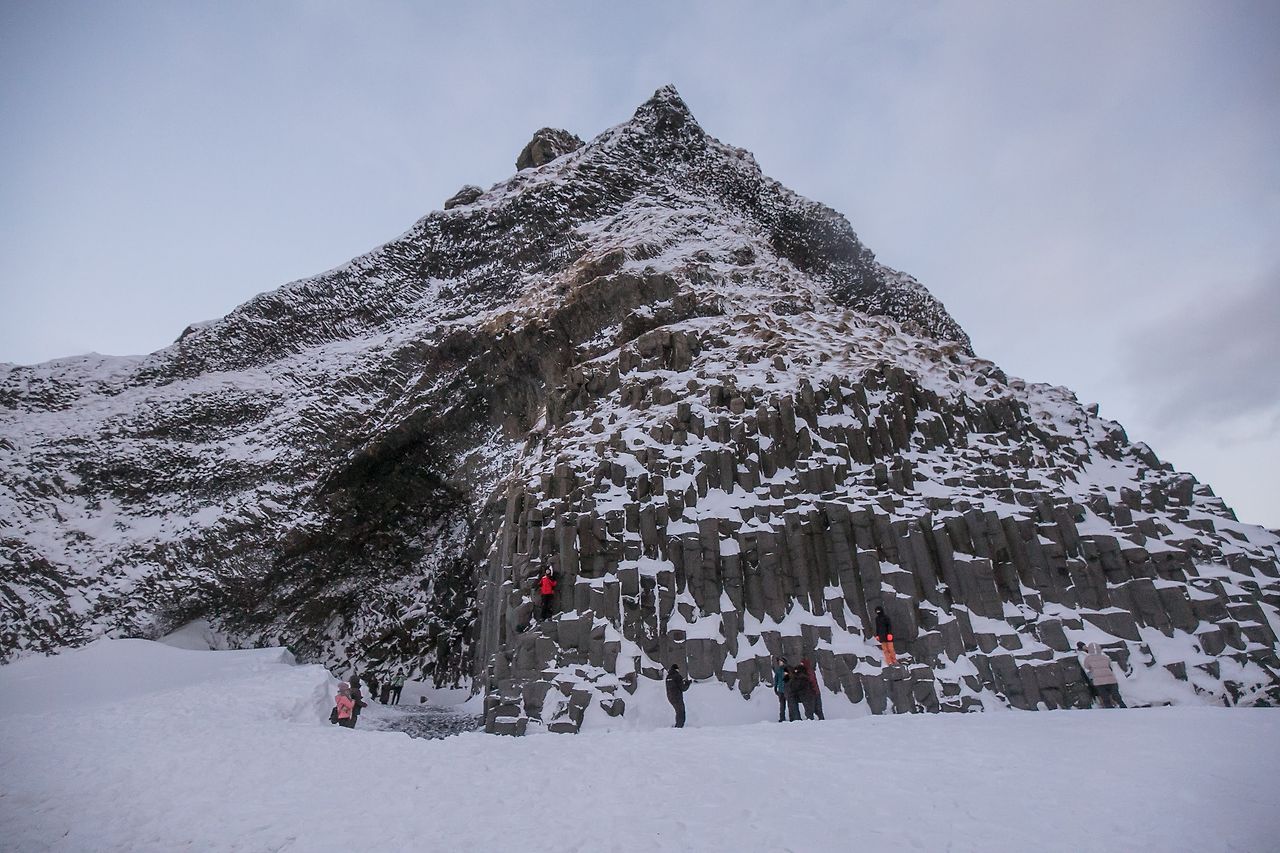 혼을 쏙 뺄 정도로 장엄한 두 개의 폭포를 지나 오늘 하룻밤을 보낼 비크 이 뮈르달 지역으로 서둘러 이동했다. 열 한시가 넘어서야 해가 떴지만 오후 네 시면 완전히 사라져 어두워질 것을 생각하니, 검은 모래해변 레이니스파라에서 보낼 수 있는 낮 시간이 한 시간도 채 안 남았다는 생각에 마음이 급했다. 분명히 스코가포스에서 30km 정도면 도착할 정도로 가까운 거리였는데, 가도 가도 같은 풍경만 계속 보기를 30분째, 2분 후 도착이라는 내비게이션 안내를 보고도 대체 이 거대한 설산 골짜기 한가운데 어떻게 해변이 나타난다는 건지 모두 미심쩍어했는데, 큰 산 하나를 끼고돌자 거짓말처럼 레이니스파라라는 표지판이 나타났다. 1번 국도를 벗어나 해변 쪽으로 내려오는 능선이었는지 수평선은 바로 보이지 않았지만 검은 지평선과 주차장, 그리고 컨테이너처럼 생긴 카페테리아 건물이 시야에 들어왔다.