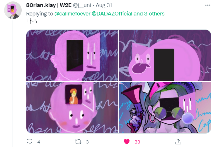 그때쯤에 크립토 시장에 겨울이 왔어요. 다른 프로젝트들이 다 주춤하는 이 시기에 뭘 하면 재밌을까 하다 다다즈로 넘어가게 됐어요.