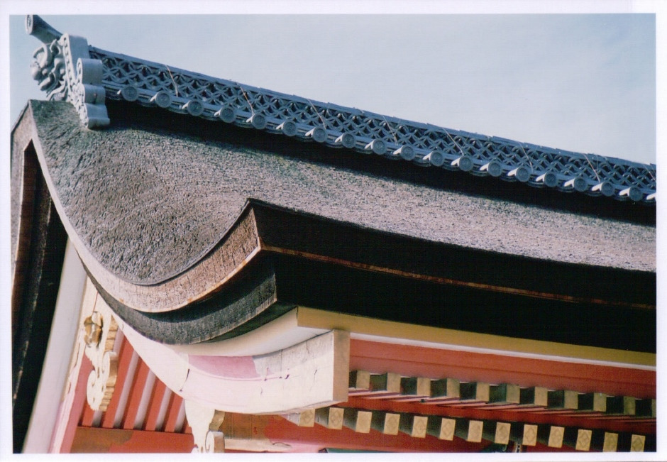 지붕의 가운데 부분은 게이샤의 머리 장식을 닮았다.