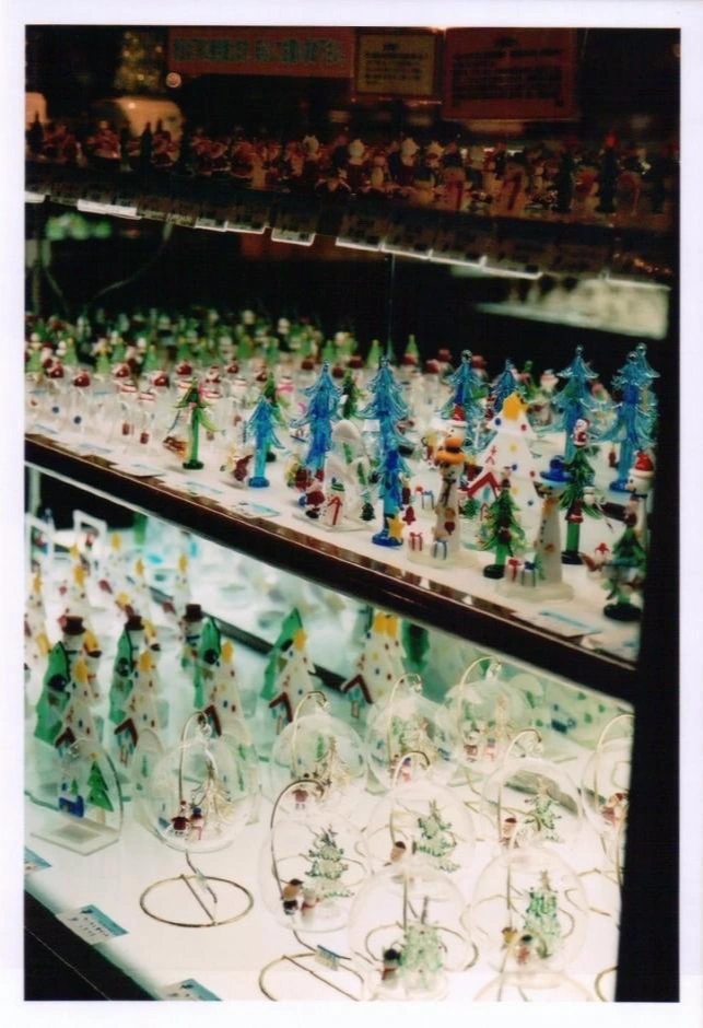 이 즈음 선물로도 사랑받을 크리스마스 모티브의 유리 공예품.