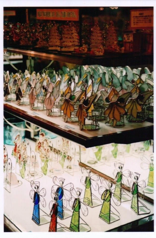 유리 날개의 천사들은 성당의 스태인드 글라스를 떠오르게 한다.