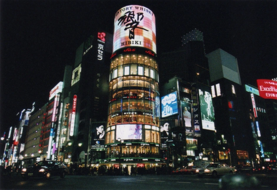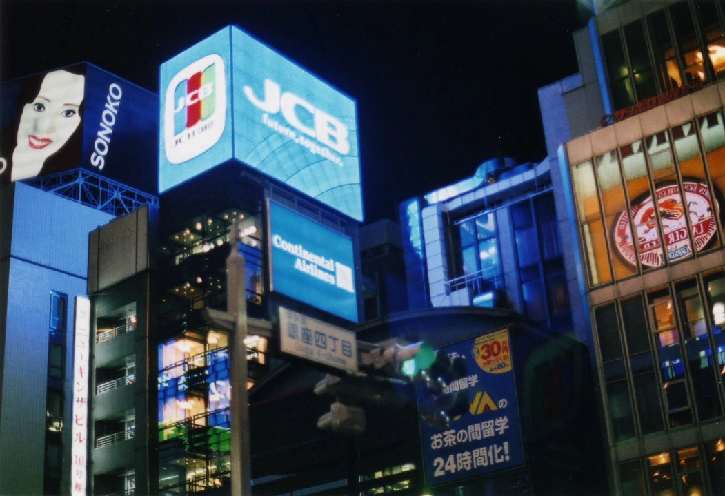 네온사인은 일본 판화의 선명한 선과 색, 평면성을 연상하게 한다.