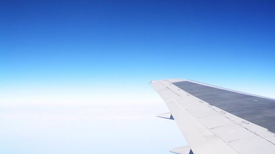 비행기가 폈던 날개를 꺾는다.