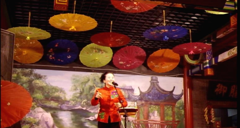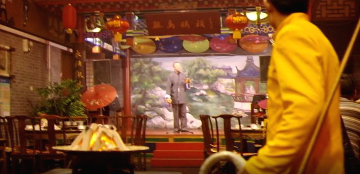 피차아이위엔, 옛 거리를 재현한 식당가와 제법 큰 공연장이 있었는데 휑하니 비어 있었다. 조금 더 안쪽으로 들어가니 밤의 화려함과 중국풍이 물씬 느껴지는 공연식당이 나왔다. 푸드코트 노점과 연회장이 결합된 듯한 분위기. 이것저것 시켜 먹고 있는 사이 간간이 만담과 노래 공연을 한다. 기예에 가까운 동작으로 물을 따라주는 청년.