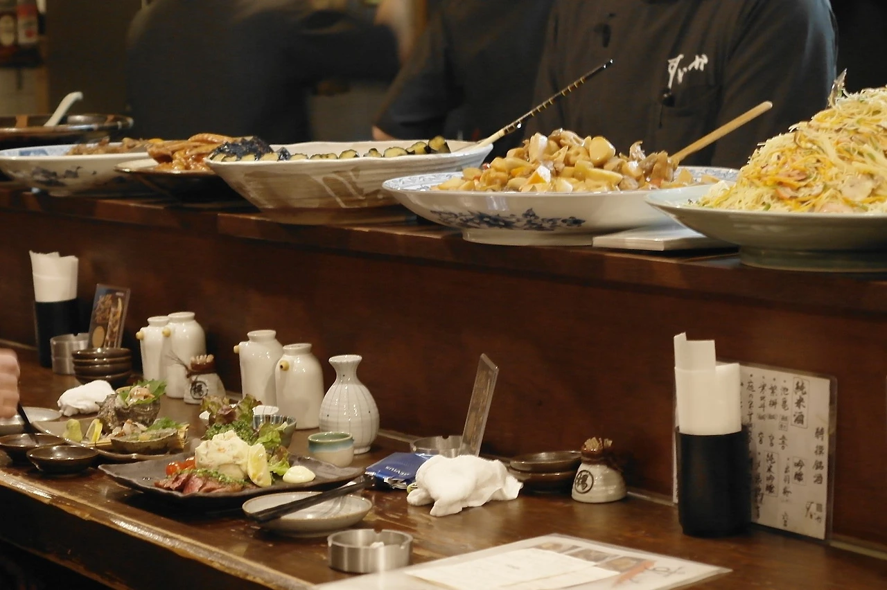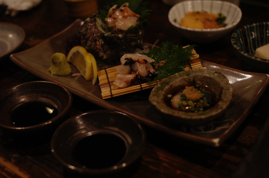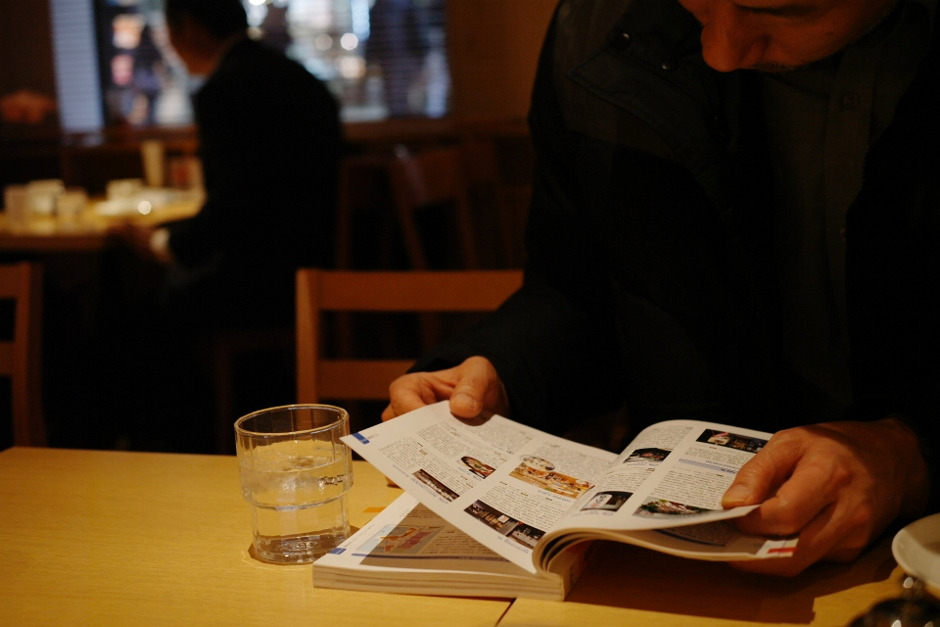 그때그때 음식을 해서 큰 접시에 올려두면 바 형태의 테이블에서 음식을 주문해서 먹을 수 있어 더 풍미가 있어 보였던 가게. 일본 가게에서 주로 사용하는 이런 긴 나무 테이블, 언제 봐도 참 좋다. 손님들의 흔적이 고스란히 새겨져 있는 낡은 나무 테이블을 깨끗하게 유지하며 세월의 깊이를 더해가는 듯. 일본 카페나 식당에 들어가면 편안한 이유 중 하나.