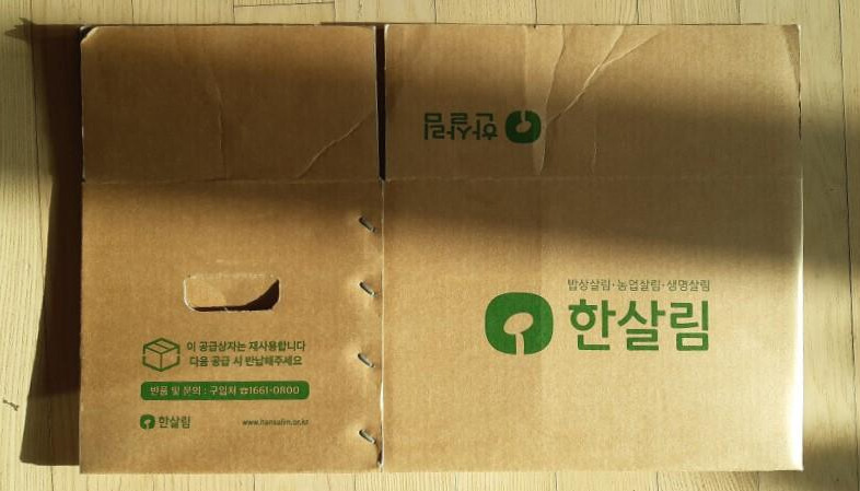 생산자의 물품 생산에서 한살림 조합이 적극 개입하여 소비자 조합원의 의견을 적극적으로 알리고 개선을 도모하는 점이 한살림의 장점이다. 최근 우유회사의 제품에 빨대를 제거해달라는 소비자의 요청을 수용한 민간 기업의 사례가 있거니와, 한살림은 협동조합의 형태라 생산자에게 이런 요구가 전달이 더 잘 되는 것 같다. 생산자의 제품생산 단계에서도 일회용품이나 플라스틱을 줄이려는 노력이 더 필요하지만, 배송단계에서 종이상자, 용기 외에도 보냉백, 아이스팩도 재사용하는 한살림. 오랫동안 내가 이용하는 이유 중 중요한 부분을 차지한다.