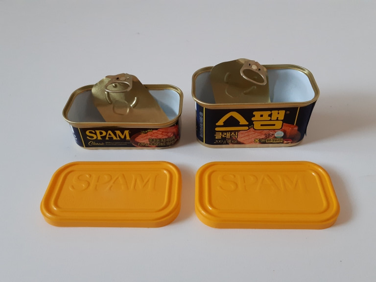 스팸이 미국에서는 값싼 정크 인스턴트식품 인식이 강하다고 하는데, 한국전쟁으로 식량난을 겪었던 한국에서는 미군부대에서 흘러나온 소시지와 햄 등으로 부대찌개를 탄생시킨 이력도 있고, 기업의 노력으로 선물세트에도 포함될 만큼 지위가 올라갔다. 거기에는 노란 플라스틱 뚜껑도 역할을 했을 것이다.