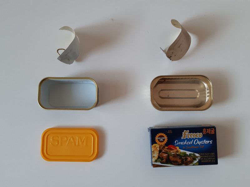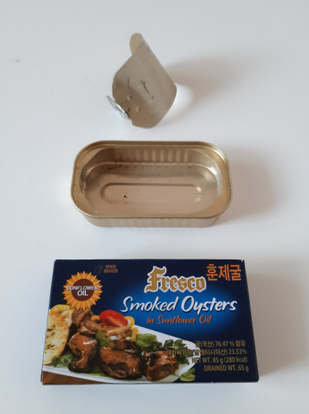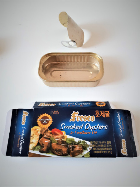 지인이 준 수입 저장식품이 몇 개 있는데, 아주 마음에 들었던 것이 두 개 있었다. 하나는 작은 병조림 엔초비였고, 하나는 종이 겉포장과 캔 속 포장에 들어있던 말린 훈제 굴 저장식품. 맛도 좋고 포장도 괜찮았다. 플라스틱 뚜껑은 찾아볼 수 없었다.