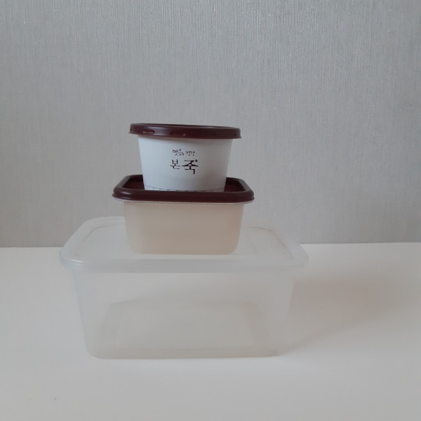 어쩌다 탈이 나서 소화가 잘되는 부드러운 죽을 먹어야 될 때가 있다. 그때는 죽을 쑬 기력도 없어 죽을 사 먹는데 병원이나 약국을 갔다가 오는 길에 죽 가게가 있으면 먹고 오면서 한 두 끼 분량을 포장해서 사 온다. 가까운 종합병원 내에 죽 체인점 본죽이 있어 이용하는데, 포장용기가 내열성이 좀 있어 보이고 밀폐력이 좋아서 재사용하고 있다. 하지만 일회용에 가까워서 사용 횟수나 범위에 제한을 두고 일정 기간 이후에는 분리 배출하려고 한다.