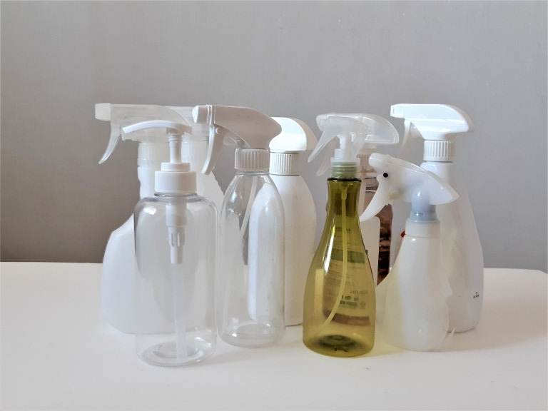 찌든 때나 얼룩 등을 부분적으로 제거하는 강력한 기능의 세제가 분사하는 방식 용기에 담겨있는 경우가 많은 것 같다. 분사 기능을 담당하는 마개는, 공업용은 모르겠지만, 필자가 구입한 가정용 제품 같은 경우 재사용에 무리는 없는 것으로 안다. 표준 크기의 용기라면 호환도 된다.