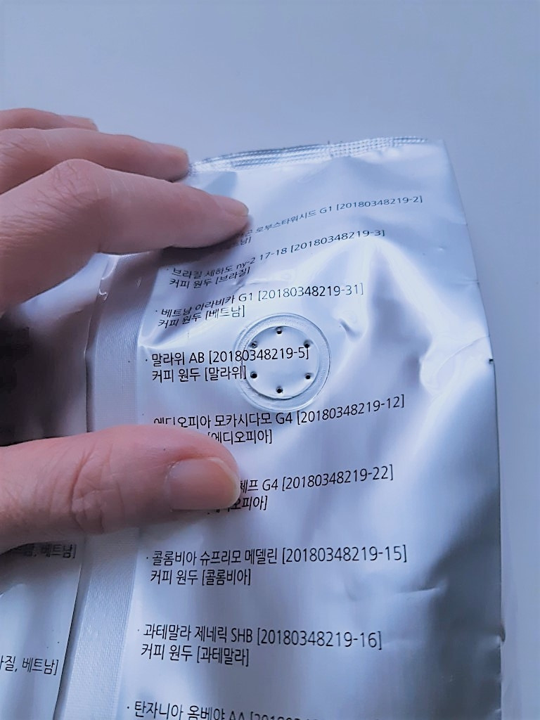 이렇게 3개의 불필요한 물건이 고객 사은 차원에서 같이 전달되어 왔다. 그리고 내가 주문한 상품인 원두커피 대용량. 내친김에 이 녀석의 포장도 살펴본다.
