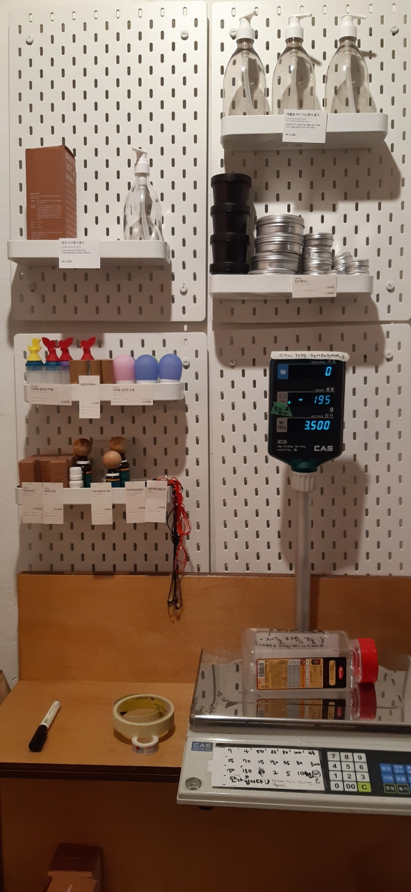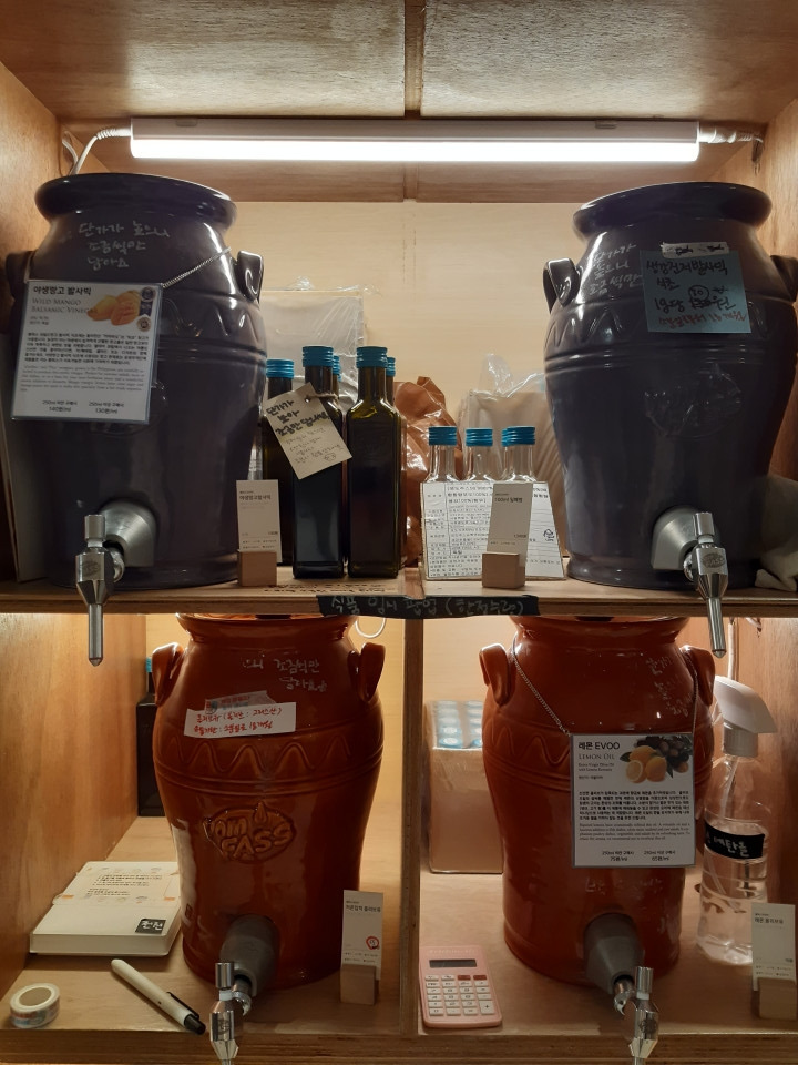 펌핑 용기도 판매한다. 무게를 재어서 계산대로 가져가서 정산.