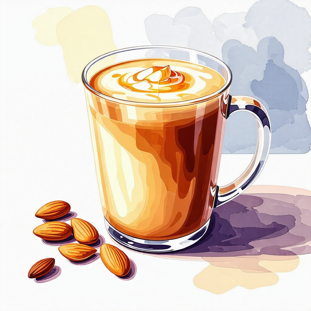 배경음식. 아몬드 밀크와 꿀을 넣은 따뜻한 라떼