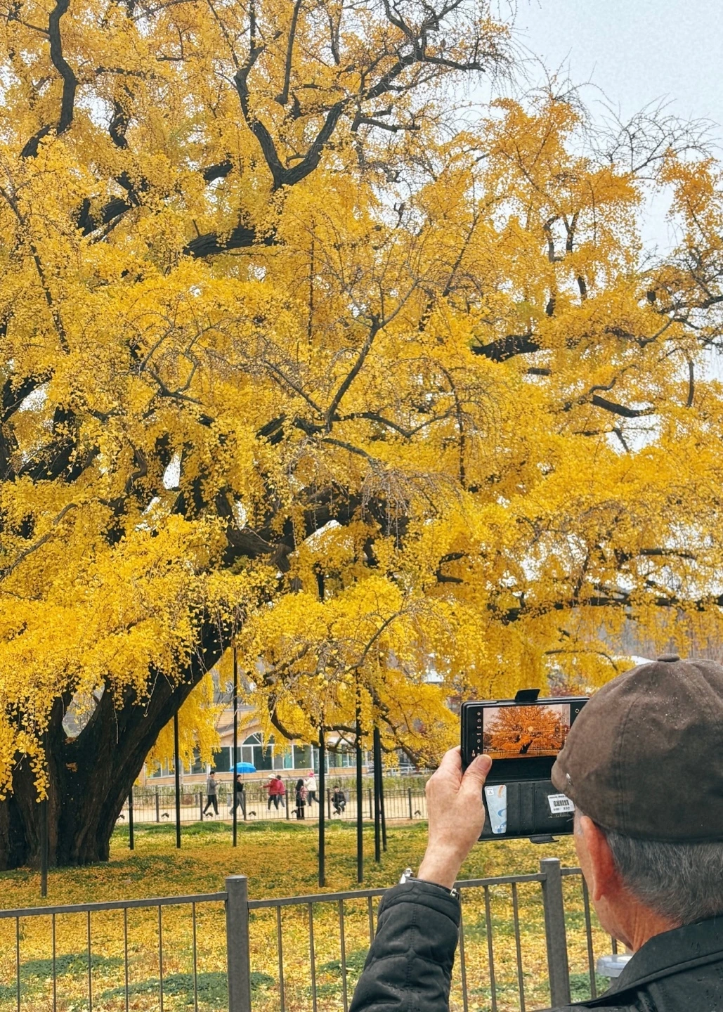 샛노란 은행 잎이 하늘을 가득 채운 그 아래에서