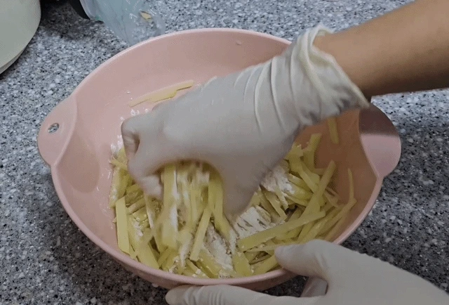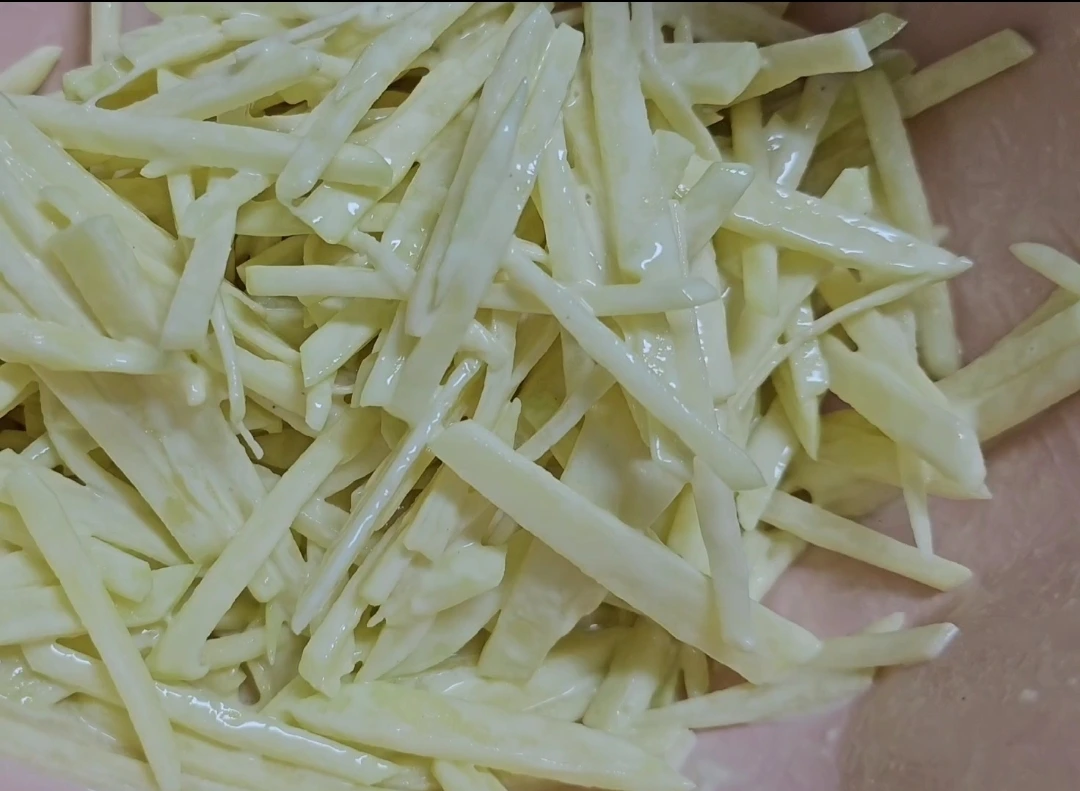 대충 감자채 양의 반정도로 부침가루를 툭툭 넣는다.
