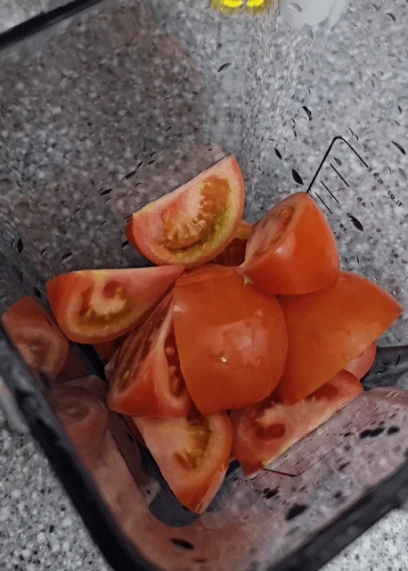 토마토 꼭지도 따주고 썰어야지 잘 갈린다.