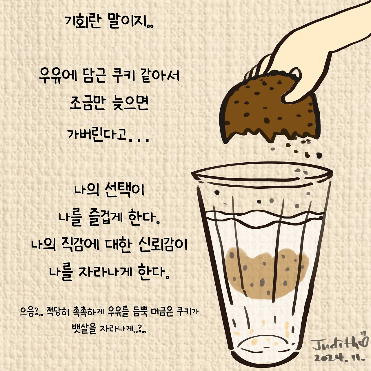 으응.. ? 적당히 촉촉하게 우유를 듬뿍 머금은 쿠키가 뱃살을 자라나게...???