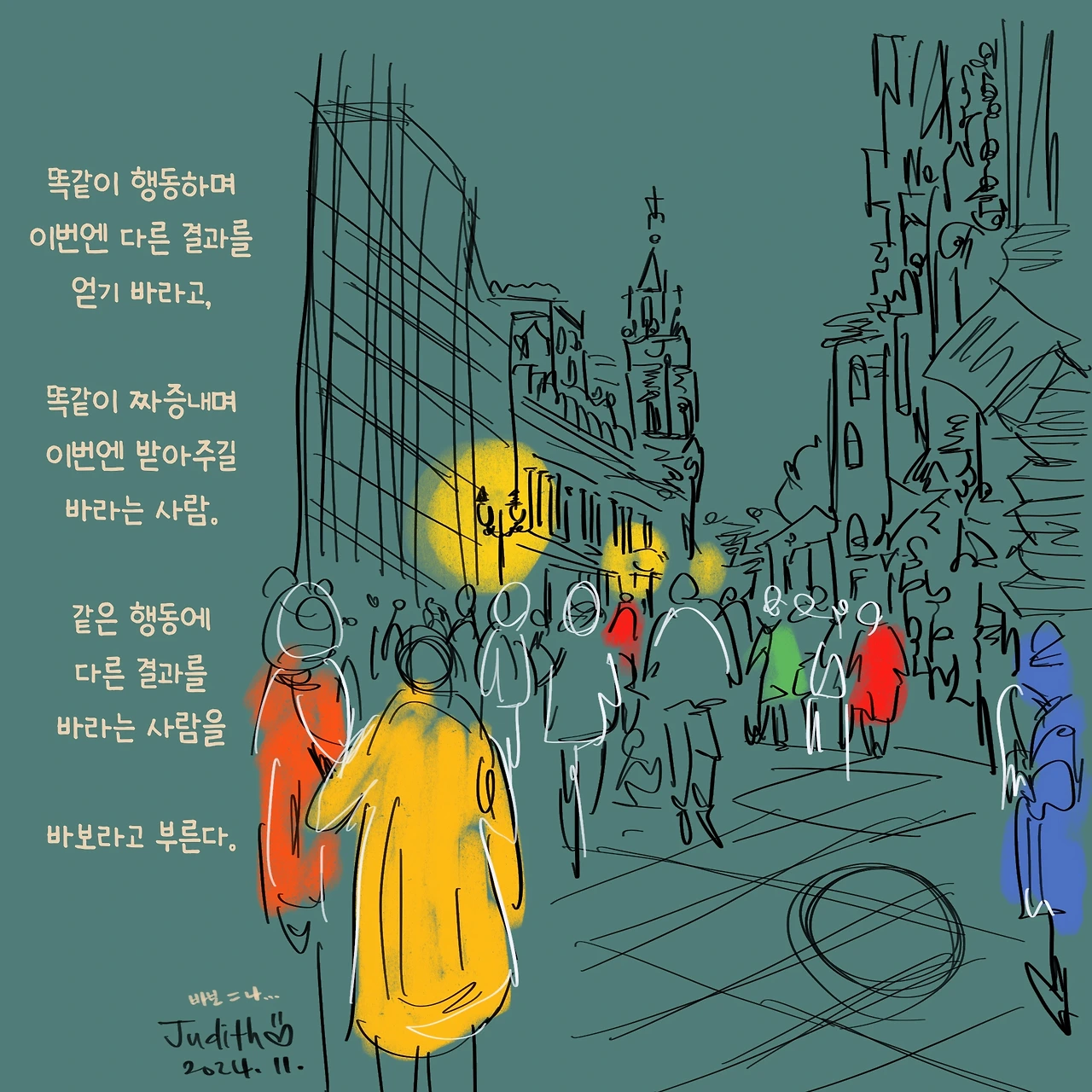 글쓰고 그림그리고 음악을 연주하고.. 아직은 펜과 물감이 좋은 사람입니다. “새벽 5시 책상앞, 쥬디스 그림일기“ 출판하였고, 언젠가 나왔으면 하는 2편을 준비중입니다.