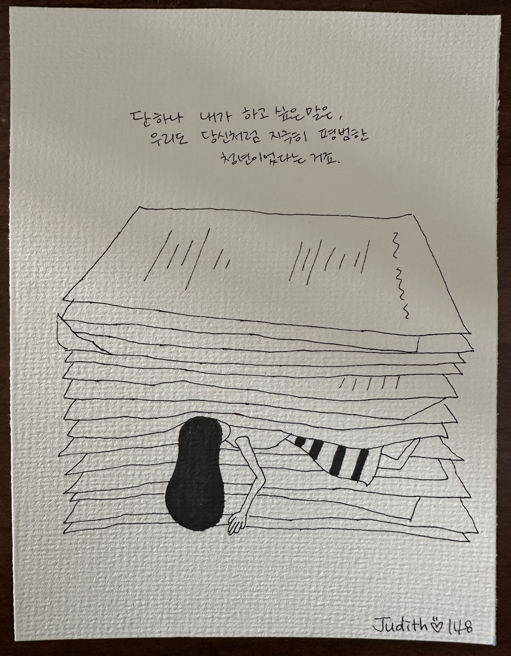 글쓰고 그림그리고 음악을 연주하고.. 아직은 펜과 물감이 좋은 사람입니다. “새벽 5시 책상앞, 쥬디스 그림일기“ 출판하였고, 언젠가 나왔으면 하는 2편을 준비중입니다.