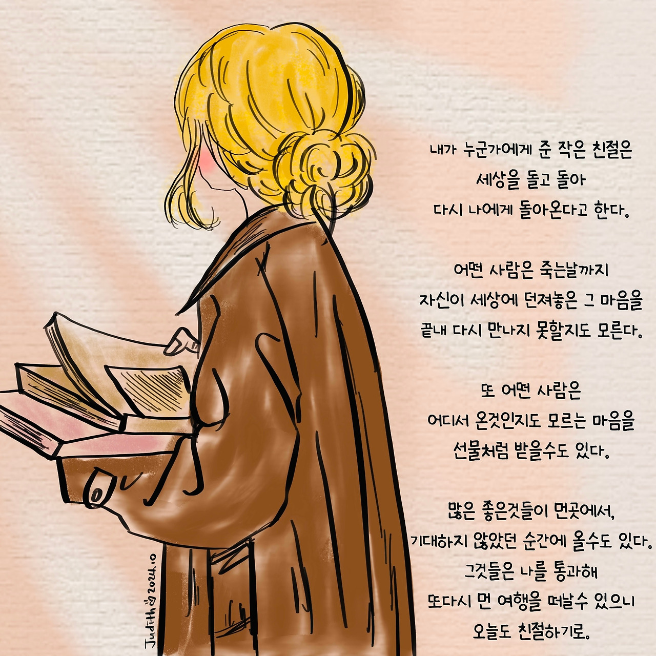 글쓰고 그림그리고 음악을 연주하고.. 아직은 펜과 물감이 좋은 사람입니다. “새벽 5시 책상앞, 쥬디스 그림일기“ 출판하였고, 언젠가 나왔으면 하는 2편을 준비중입니다.