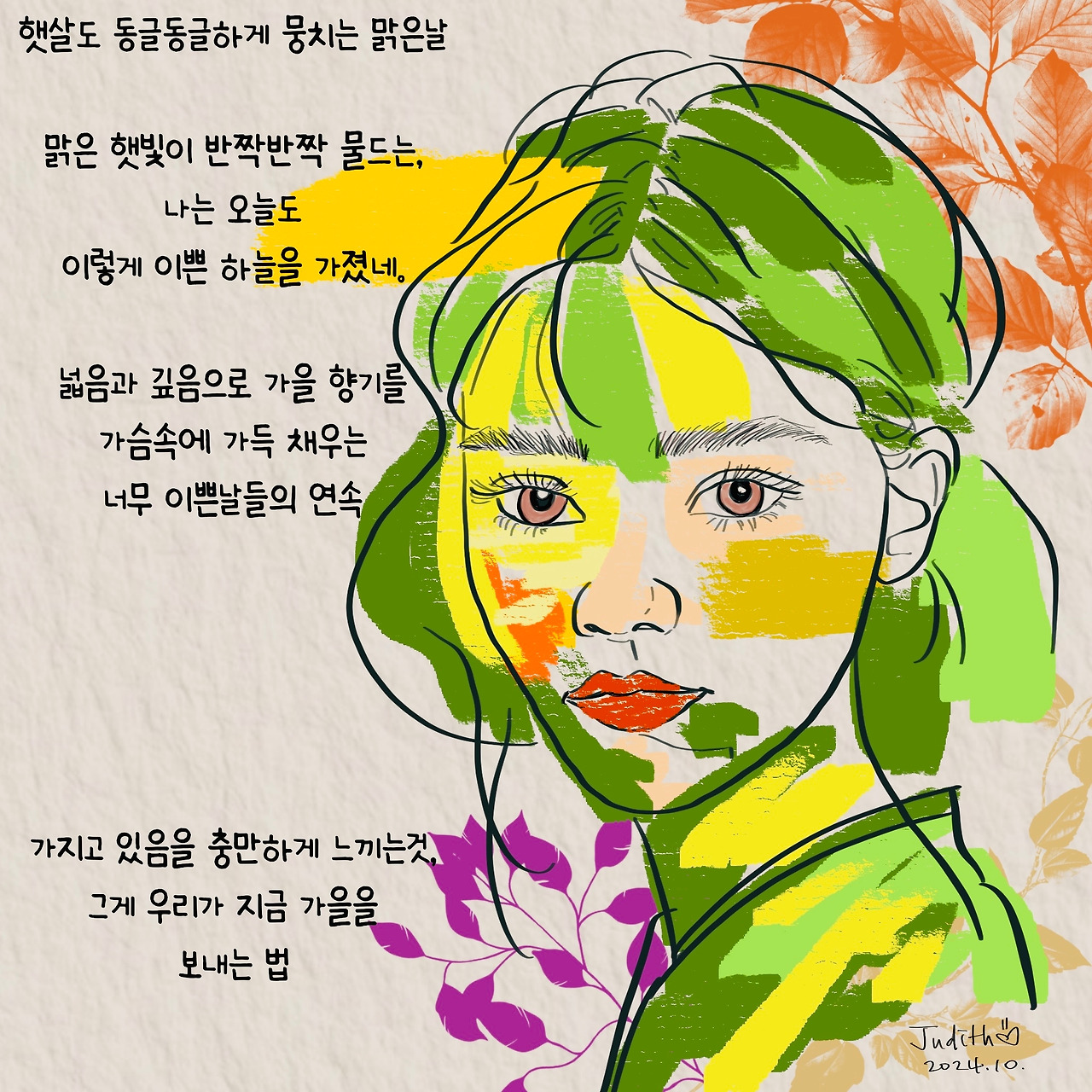 글쓰고 그림그리고 음악을 연주하고.. 아직은 펜과 물감이 좋은 사람입니다. “새벽 5시 책상앞, 쥬디스 그림일기“ 출판하였고, 언젠가 나왔으면 하는 2편을 준비중입니다.