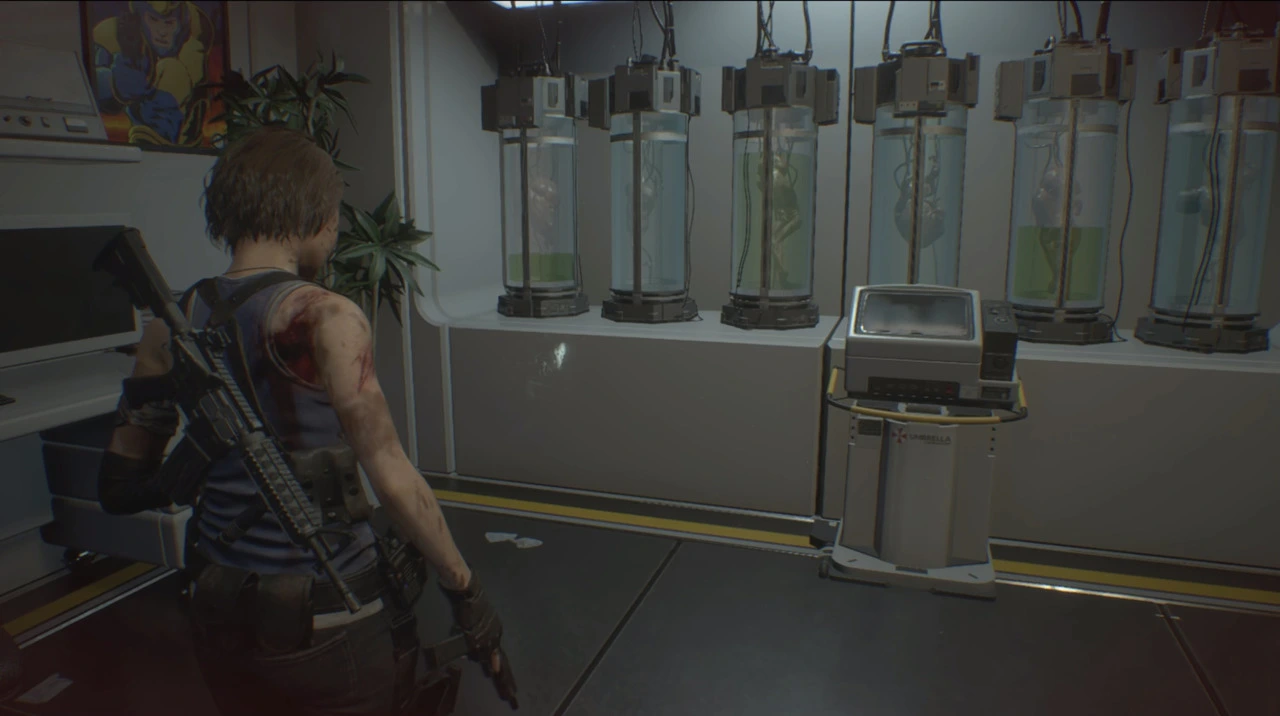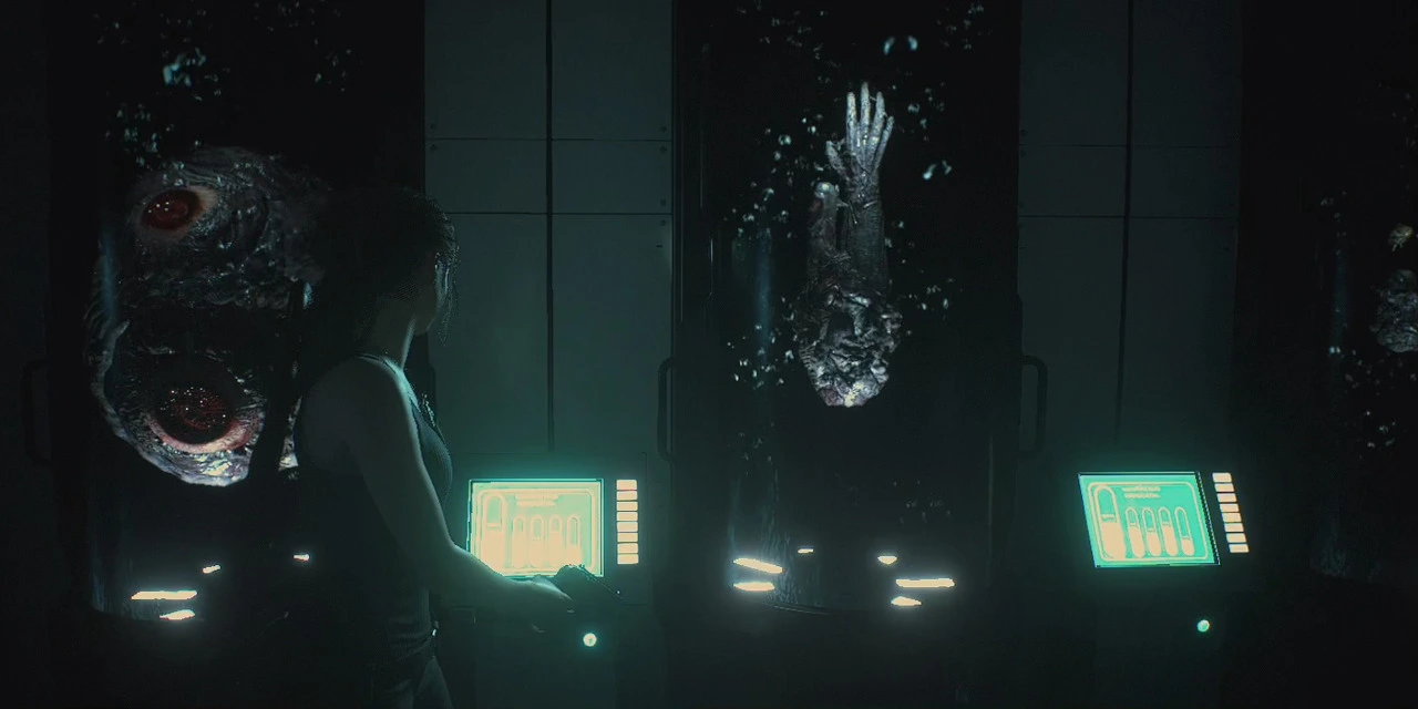 <RE:3>의 이야기와 게임 진행은 <RE:2>에 비하면 아무래도 아쉬울 수밖에 없었어요. 절대적인 분량부터가 부족하니까요. <RE:2>가 비슷한 이야기를 두 캐릭터로 반복하는 구성이라 실제 분량은 보이는 것보다 좀 더 짧은 편이기는 하지만, <RE:3>는 그보다도 짧았습니다. <바이오하자드> 시리즈의 매력 중 하나인 퍼즐도 <RE:3>에서는 거의 없는 수준이었던 것 같네요. 게다가 경찰서 스테이지는 <RE:2>의 공간을 재방문하는 것 이상의 재해석이나 새로운 요소가 없었고, 연구소를 돌아다니면서 백신을 찾거나 합성하는 전개와 오수로 가득한 지하 공간을 돌아다니는 전개 역시 <RE:2>와 많은 부분 겹치다보니 <RE:3>만의 요소는 더욱 부족하게 느껴졌고요.