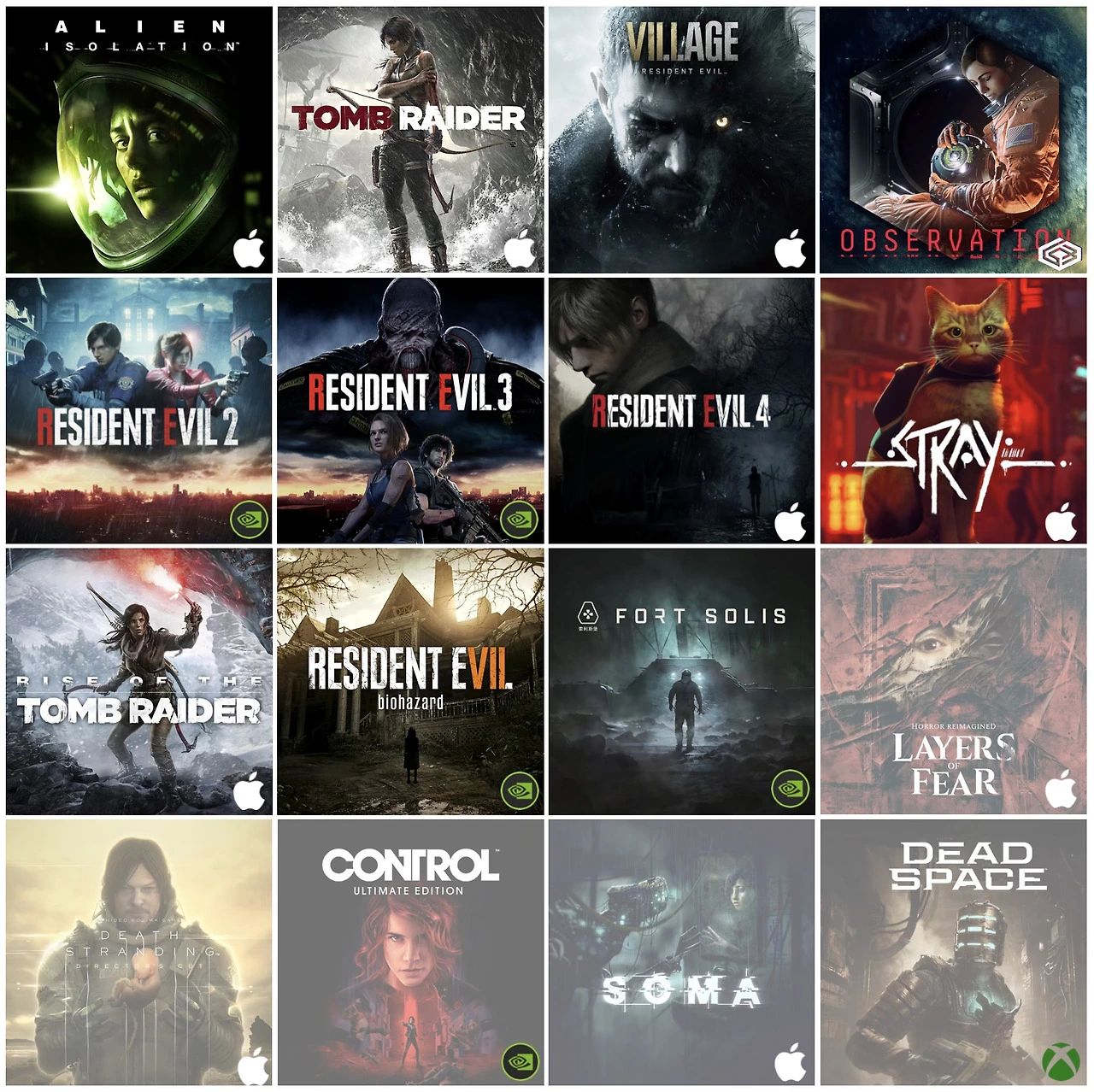 그러던 와중에 지난주에 있었던 애플의 WWDC에서 재미있는 소식을 접했어요. 이번 WWDC의 화두는 애플이 자신들의 제품에 새롭게 추가하는 인공지능이었지요. 저도 그 부분이 굉장히 흥미롭기는 했습니다. 하지만 개인적으로 놀랐던 곳은 게임에 대한 부분이었어요. MacOS를 네이티브로 지원하는 새로운 게임 목록에 <바이오하자드 7: 레지던트 이블(Resident Evil 7: Biohazard, 2017)>과 <바이오하자드 RE:2(Resident Evil 2, 2019)>가 있었던 겁니다. 두 게임 모두 굉장히 재미있게 플레이했지만 MacOS를 지원하지 않아서 지포스나우를 통해서 했었는데, 네트워크 환경에 따라 플레이가 원활하지 않을 때도 있었고 와이파이가 없는 곳에서 할 때는 아이폰의 작은 화면으로 할 수밖에 없었어요. 대기 시간이 길 때도 있고 할 때마다 아이폰의 네트워크 보안 기능인 Private Relay을 꺼야 하기도 했고요. 아무래도 그리 쾌적한 경험은 아니었습니다. 하지만 이제 MacOS에서 네이티브로 지원한다고 하니 다시 한번 해보고 싶어 지더군요. (<바이오하자드 RE:3(Resident Evil 3, 2020)> 가 없는 건 조금 아쉽네요.)
