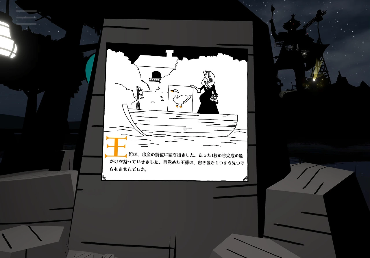 게임이 담고 있는 이야기 자체는 비교적 단조로운 편입니다. 어떤 하나의 목적에 빠져버린 나르시시스트 왕과 그를 버리고 떠나버린 왕비의 이야기입니다. 둘 사이에는 아들이 하나 있는데 아마 먼로를 상징하는 거겠지요. 먼로가 왕, 즉 아버지를 찾아가는 이야기라고 할 수도 있겠습니다. 어머니의 사후에 오래전 떠나버린 아버지를 찾아가는 자식 이야기는 그리 드물지 않지요. 하지만 그걸 전달하는 방법이 재미있었어요. 누가 동화책을 읽어주는데 그 이야기가 과거가 되어버린 세상을 직접 돌아다니고 있다는 느낌이었습니다. 여기에 앞에서 말한 다채로운 게임 플레이가 어우러지면서 이 작품만의 매력을 만들어내는 것 같습니다.