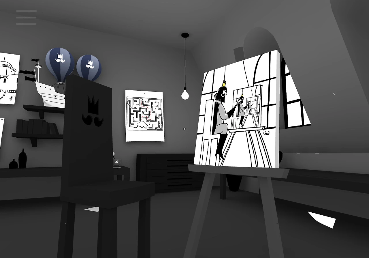 처음에는 바닥과 벽 밖에 나타나지 않아 미로 속에 갇힌 건가 싶은데 시간이 지나면서 벤치나 나무, 언덕, 호수, 심지어는 개구리까지 나타납니다. 그렇게 순백의 캔버스 위에 검은 물감을 던지며 백조의 흔적을 쫓아가다가 뒤를 돌아보면 어느새 마치 한 폭의 수묵화 같은 풍경이 완성되어 있습니다. 굉장히 짜릿한 순간이었어요.